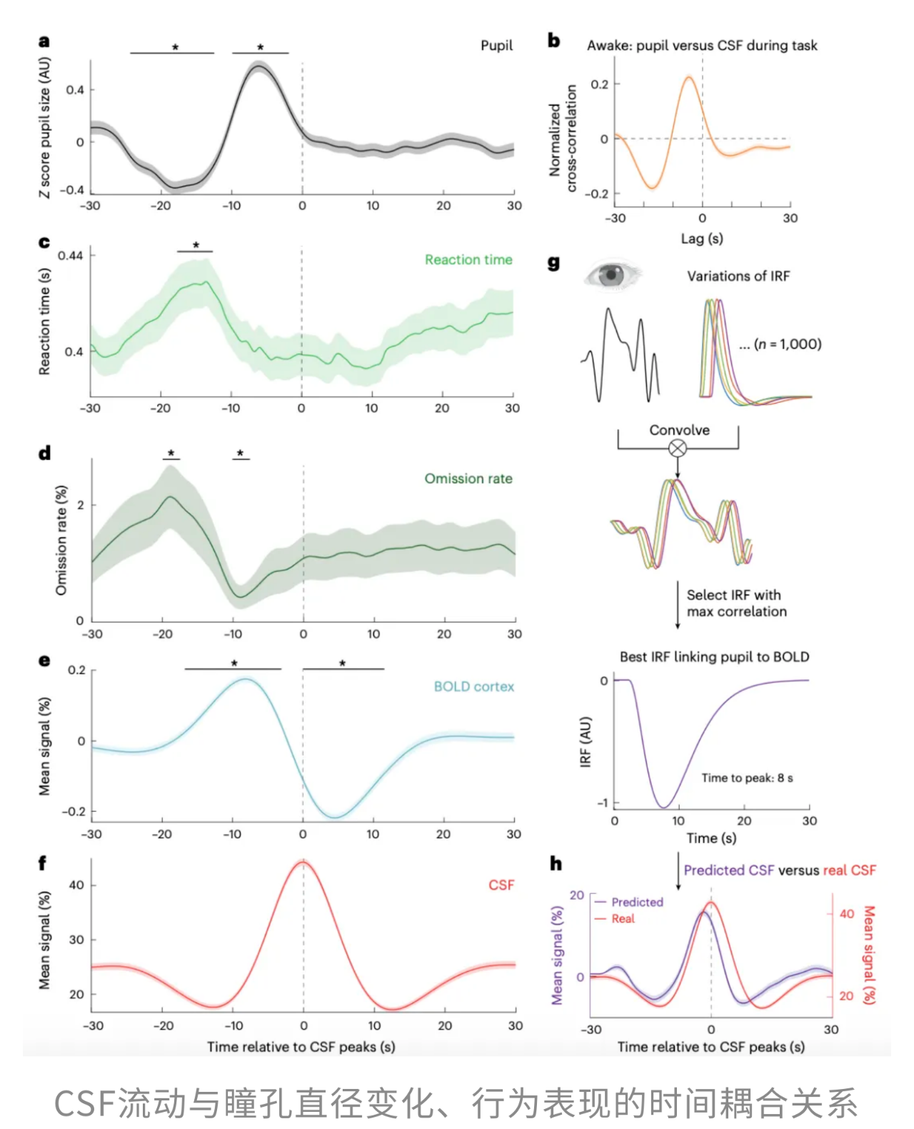 研究人员观察后发现,参与者瞳孔出现变化之后的几秒,脑脊液才开始跟着“起浪”。他们的瞳孔变小时,CSF会出现“外流”信号;瞳孔放大后,CSG则会“回流”。与此同时,他们心率下降,呼吸也变得更慢。