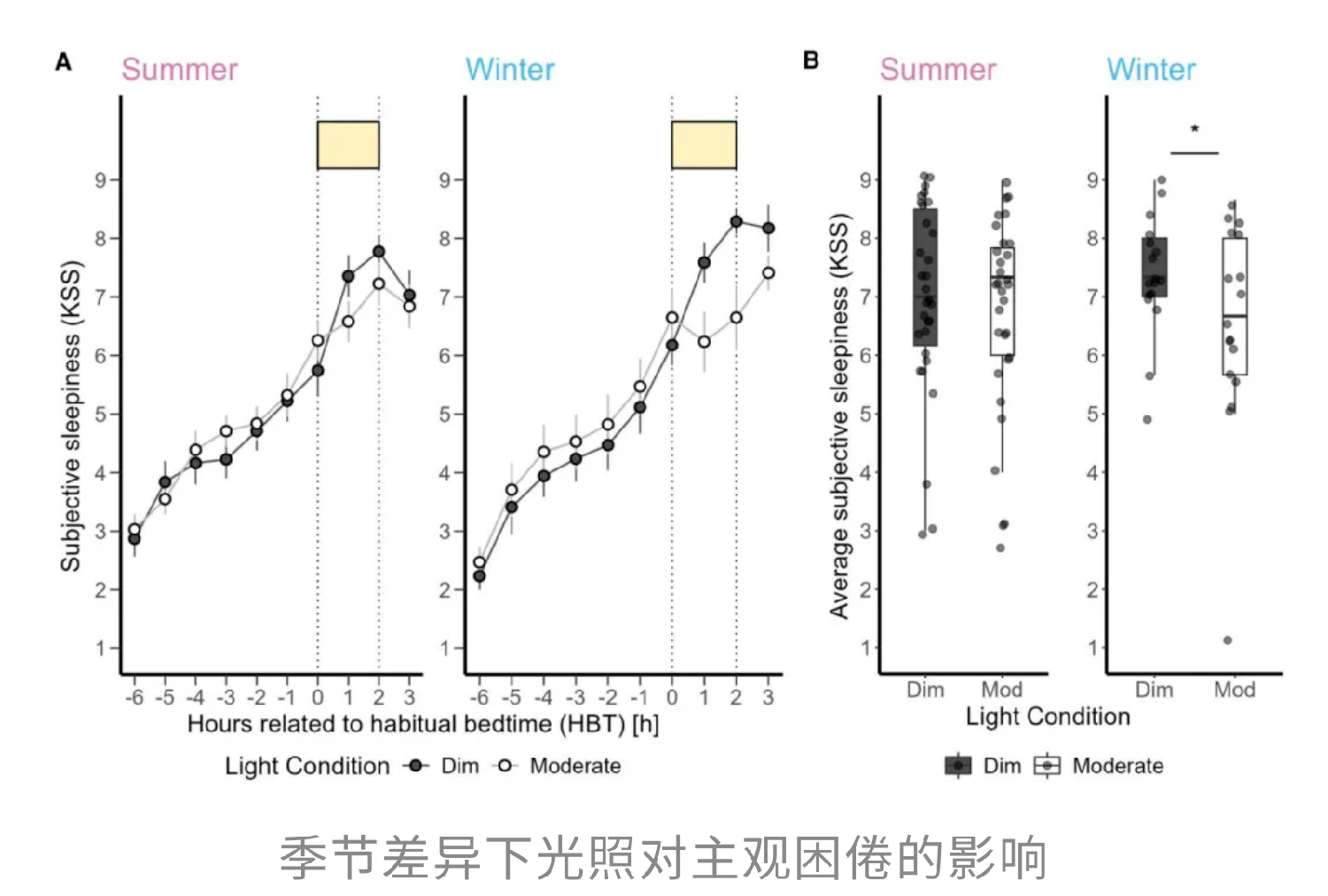 分析结果表明,白天「见光多少」,正在为夜晚的生物钟定调。白天光照越充足,夜间的「睡眠激素」褪黑素分泌启动得越早,生物钟运转得也更「守时」。在这种节律背景下,人们的困意通常会在深夜逐步累积,尤其是一旦超过平时的入睡时间,倦意便会明显加重。