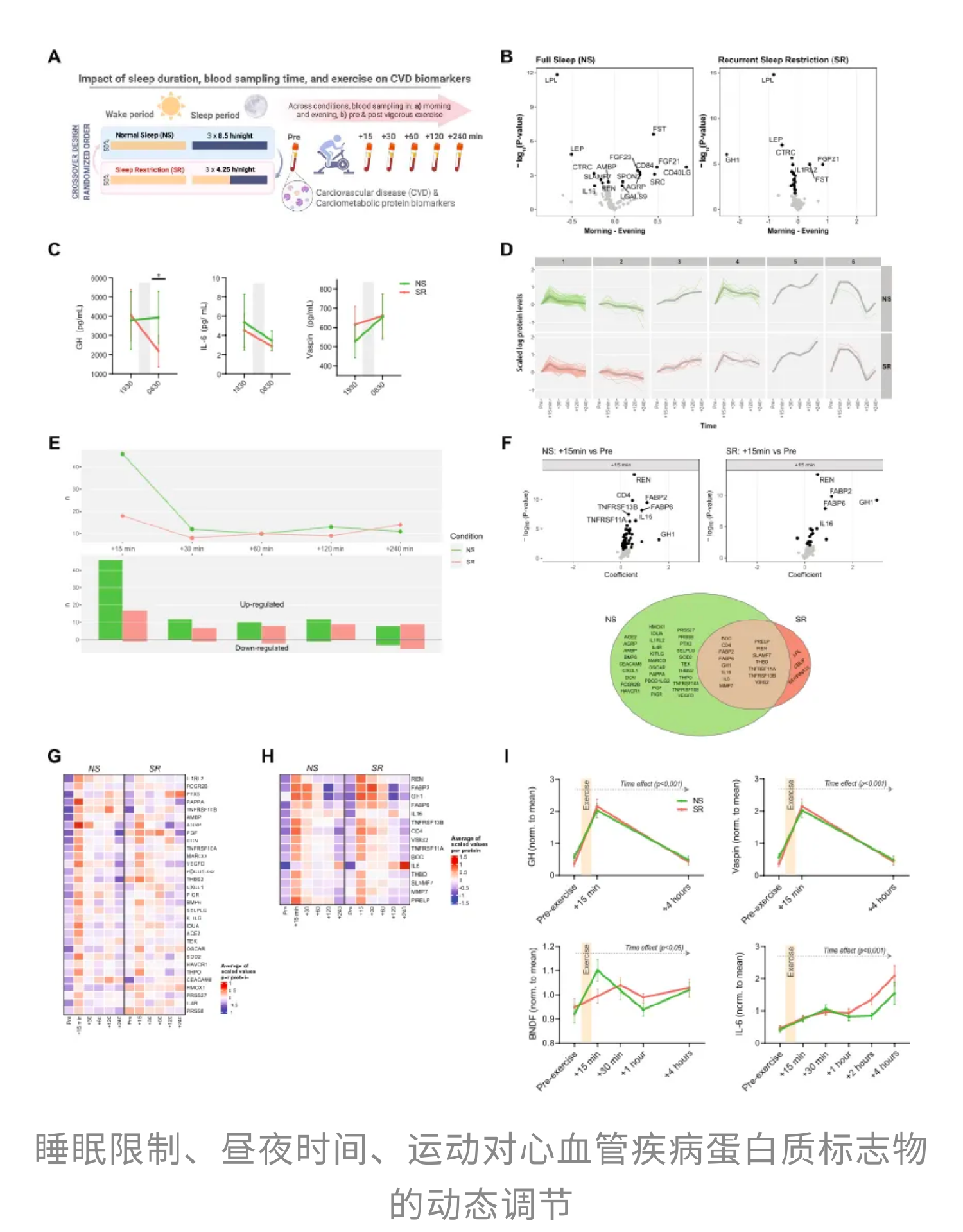 不光是这样,睡眠不足还会进一步削弱急性高强度运动在分子层面激活心血管保护通路的能力。按理说,运动应当唤醒一整套有益的蛋白网络,为心血管健康「加分」;但在熬夜的情况下,这套系统的响应不仅范围变小,强度也明显打了折扣。