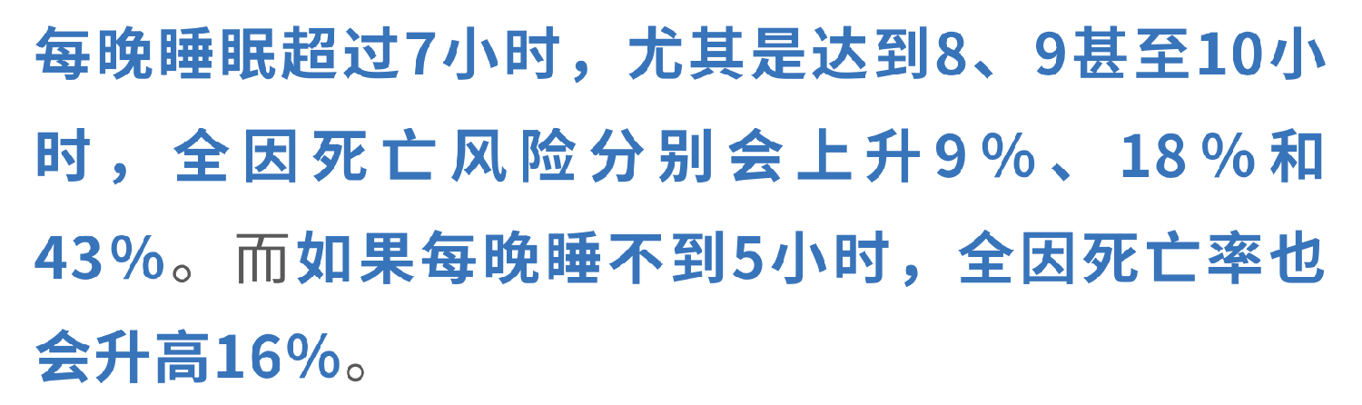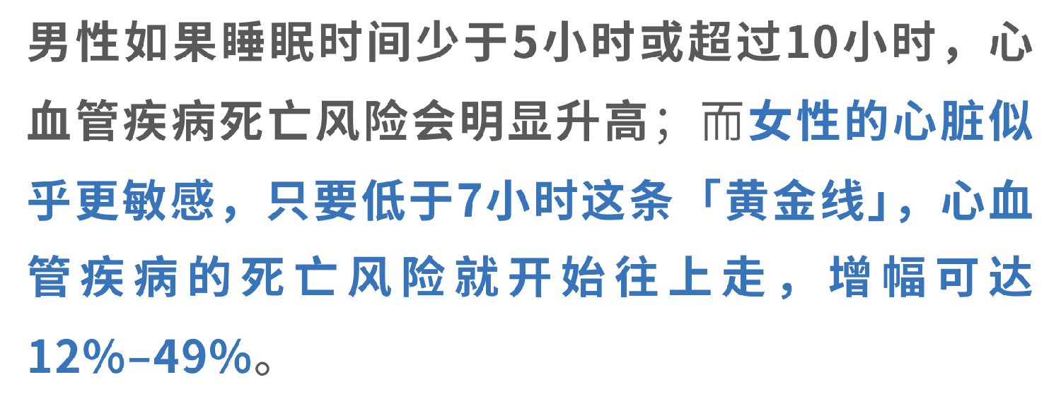 对于女性,情况类似:每天少睡或多睡1小时,全因死亡率都会有所上升。
