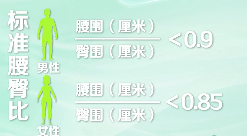 成年女性腰臀比>0.85、男性>0.9即可诊断为腹型肥胖。