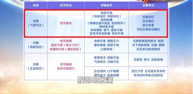 中期:结节相对会稍微硬一点,舌质紫暗或有瘀点,瘀斑舌下络脉青紫、迂曲、增粗,舌苔多白腻或黄腻;