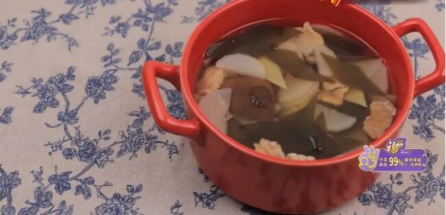 【方解】海带软坚化结,降脂降糖、调节血压;白萝卜理气化痰下气;瘦肉益气养精养血;陈皮健脾化湿化痰理气。