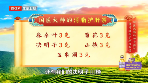 【组成】春桑叶3克,菊花3克,决明子3克,山楂3克,玉米须3克。