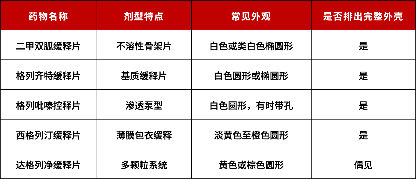 随着制药工艺的发展,除了上述骨架型,常见的还有膜控型、渗透泵型等。不同剂型的工作原理和排出外观可能不同。了解这些基本知识,能帮助我们在面对身体的一些“非常规”信号时,多一份科学的从容,少一份无谓的恐慌。