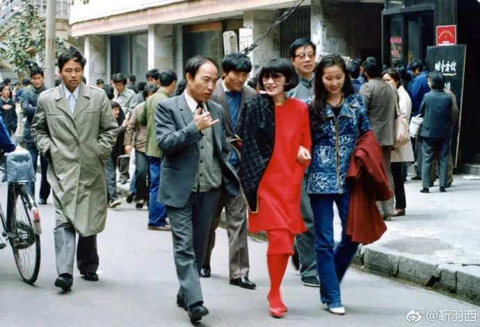 节目中,这个衣着鲜亮、妆容时髦的东方女人,穿梭在中国的各个城市,在当时「黑白灰蓝绿」的着装色调中显得尤为亮眼。