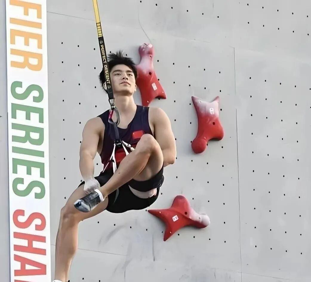 这位小哥也许不是大家眼中的那种标准帅哥。但在攀岩赛场上,就像漫画里走出来的风之子,表情沉稳,眼神坚毅,胸中却有万千海浪在翻涌,莫名给人一种热血感……