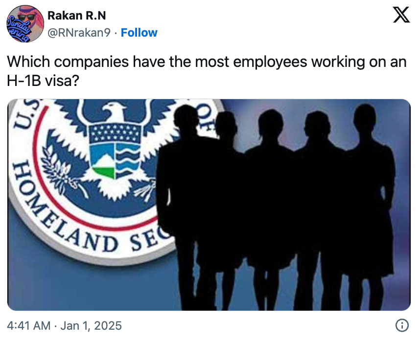 科技行业长期以来一直是H-1B签证的主要受益者。该计划每年发放65,000个名额,另外为硕士或更高学历的持有者提供额外20,000个名额。这些签证主要用于吸引印度、中国等国的技术工人进入美国市场。
