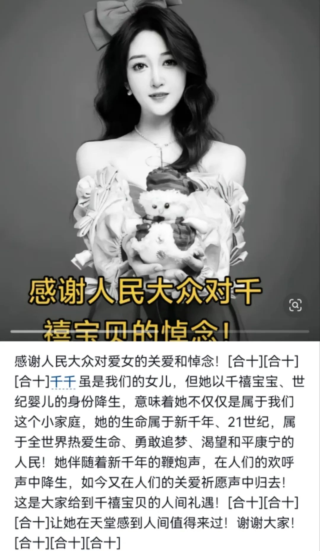没想到,年仅25岁的千千,居然说去世就去世了,她的名字永远留在了讣告里。
