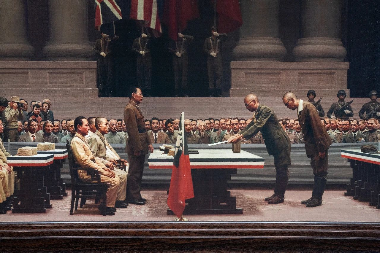 这一天,日本天皇宣布接受《波茨坦公告》无条件投降,历经十四年的浴血奋战,中国人民迎来了抗日战争、也是世界反法西斯战争东方主战场的最终胜利。四万万民众涌上街头,秧歌铿锵、锣鼓喧天,火把映红山河,标语缀满街巷,欢呼胜利的声浪穿透河谷山川。
