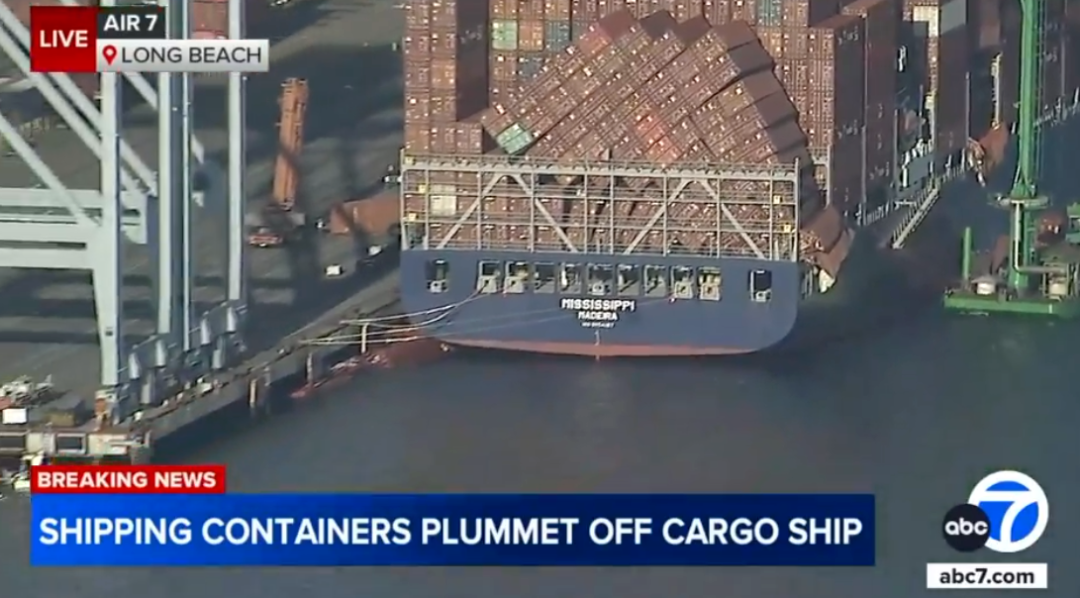 长滩港官员称,“Mississippi”货轮来自中国,装载鞋类、服装、电子产品等,配送至全美多家零售商,包括Costco、Target、Walmart以及小型商店。多家零售商或因此次事故遭受货损。