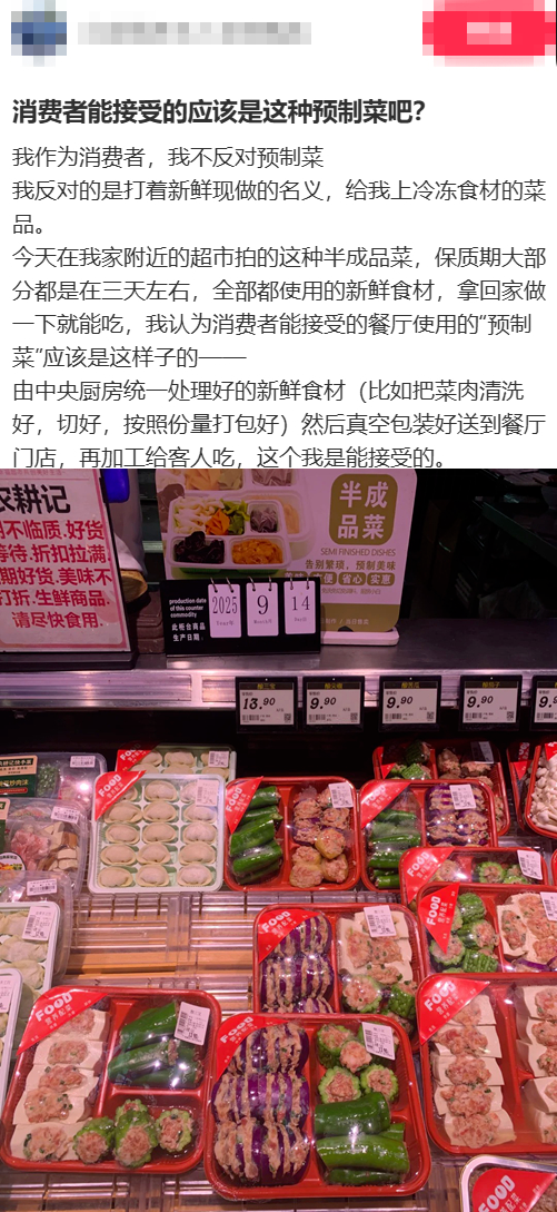 问题是,市面上有不少餐饮企业把“料理包”硬贴成预制菜,背面配料表写着防腐剂和添加剂,那才更该被盯紧。