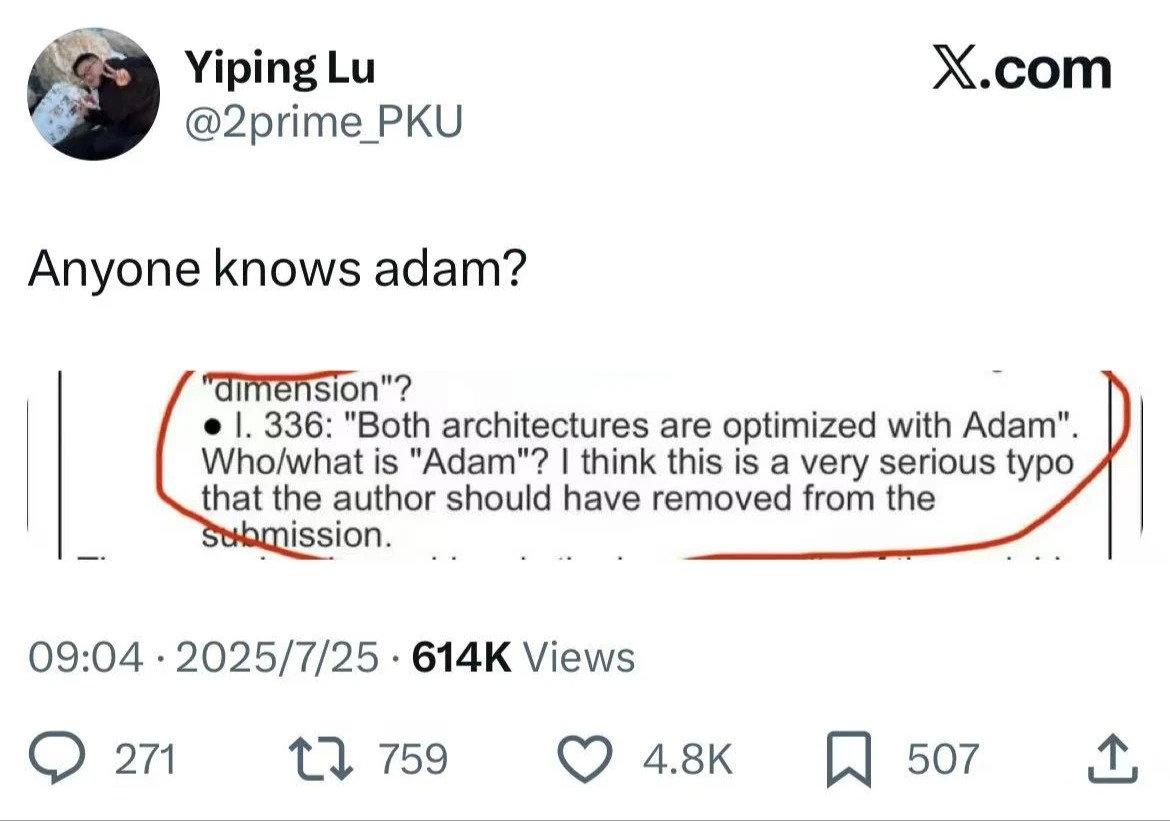 今年7月,机器学习顶会NeurIPS曾质疑研究者未解释“Adam”——这本是行业最常用的一种优化算法,只要接触过模型训练,就难以问出这种问题。
