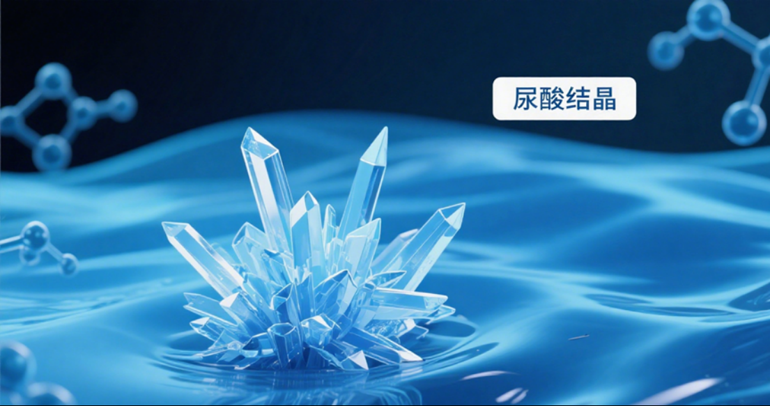 血液像一杯水,尿酸就像溶解在里面的盐。浓度(500+)太高,水(血液)溶解不了这么多盐(尿酸),盐就会析出结晶——“玻璃渣”(尿酸结晶)就形成了。