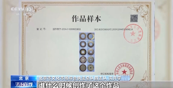 北京市文化市场综合执法总队四支队沈开宇:这是一个美术作品,谁拥有美术作品的著作权,我们要看到底是谁创作了,谁什么时候创作了这个作品。创作冰箱贴的过程当中,他肯定有初版、定稿版,工厂生产的时候还有相应的委托合同,这些材料都证明了创作过程。但是我们再去调查被投诉单位,让他们提供相关的证明材料,证明他们创作了这个作品的时候,他们是提供不出来相关的资料的。
