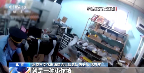 北京市文化市场综合执法总队四支队沈开宇:在胡同的一个小平房里,他发货的仓库其实非常简陋,就是一种小作坊。