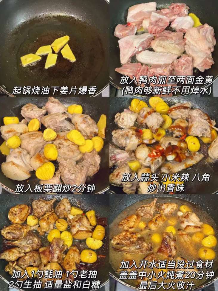 等雞肉燉得半爛,把板栗倒進去,加少許鹽和一勺白糖提鮮,繼續燉十五分鐘。