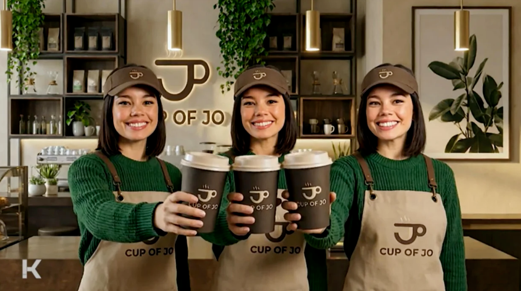 AI工程师菲利普·伊斯格罗(Fillip Isgro)展示了一个咖啡店广告的概念:通过AI生成多个虚拟形象在不同场景中表演,并且可以快速将静态图像赋予动态效果。这种方式不仅节省了拍摄成本,也为创意表达提供了更多自由。
