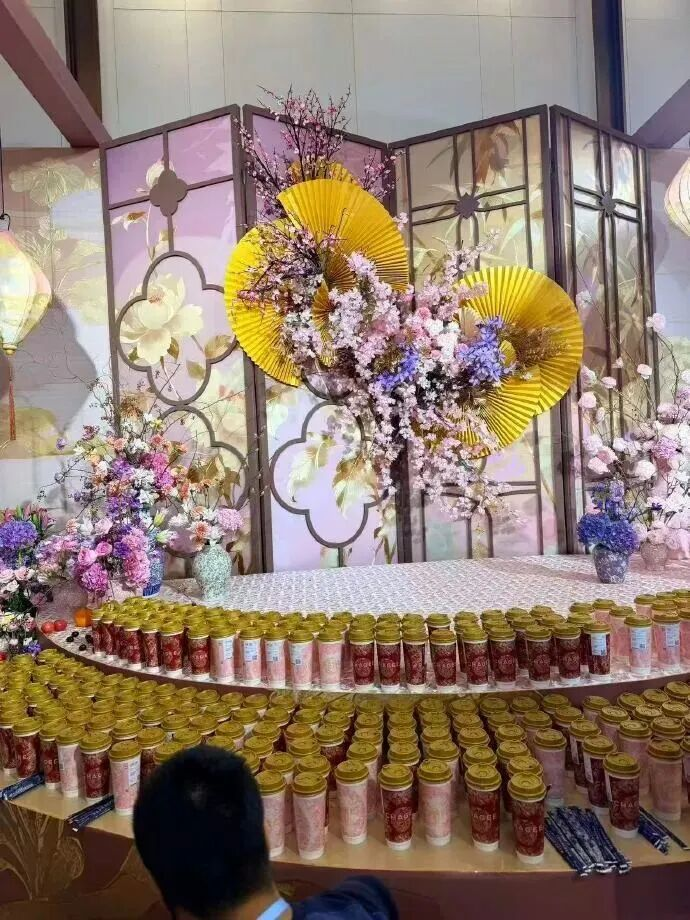 霸王茶姬创始人举办婚礼,现场展台摆满奶茶(美中報道)