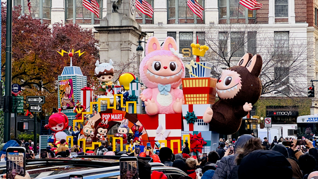 访美前一周,泡泡玛特最火爆的潮玩IP Labubu刚刚惊艳亮相第99届纽约梅西百货感恩节大游行,这是100年来首个以原创潮玩IP登上游行花车的中国品牌。