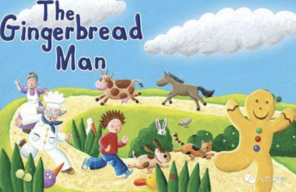 Gingerbread man圣诞姜饼人在西方家喻户晓的童话形象,出自The Gingerbread man这个传统故事,讲一只刚烤好的姜饼小人为了避免被吃的命运,从烤箱里逃出来,一路狂奔,躲过了老爷爷老奶奶,猪,牛,马,最后在过河时,被狡猾的狐狸欺骗还是被吃掉了。