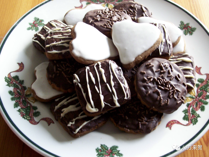 近代产生变化,会制作各种形状的姜饼,在表面画上白色糖霜。