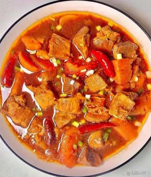 食材準備:牛腩500克、番茄3個、洋蔥半個、生薑3片、大蔥半根、冰糖5顆、料酒2勺、鹽適量、生抽2勺、老抽1勺
