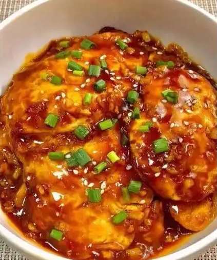 4.放入煎好的荷包蛋,翻動或用勺子淋汁,使雞蛋均勻裹上醬汁即可。
