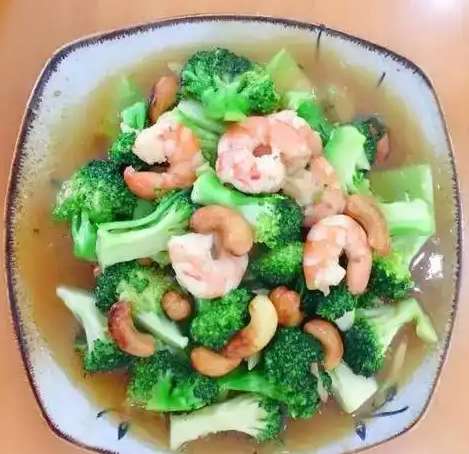 食材:腰果50克、西藍花1朵、胡蘿蔔半根、鹽、食用油。
