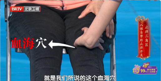 1.血海穴:脾经气血汇聚之处,养血活血、息风止痒。坐姿,手掌放另一侧膝盖上,拇指朝内按压的位置就是。