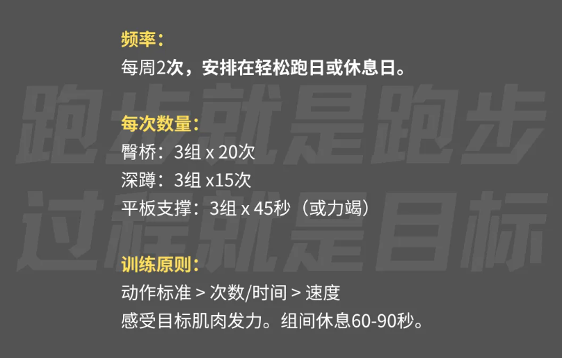 合理的跑姿,既安全省力又高效流畅,不过跑得好的关键不是技巧,而是力量。易烊千玺之所以能跑得又快又稳,得益于他从小跳舞练就的灵活性和把控力,而且现在依然保持每天一组平板撑的习惯。如果你也想让身型好看有力,跑步得更畅,不妨从以下几个简单实用的力量训练开始: