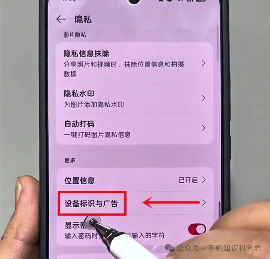 进来之后呢,再往下滑,下面这里有一个设备标识与广告,大家看到了吗?