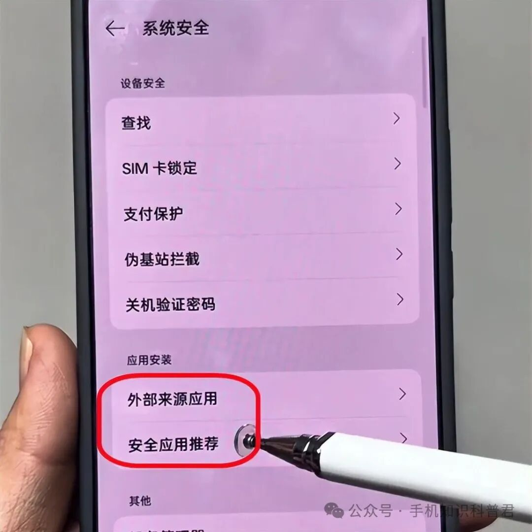 好,重点来了哈,大家看到这里有有一个应用安装了吗?你看这个呢,一个是外部来源应用安装一个安全应用推荐是不是?