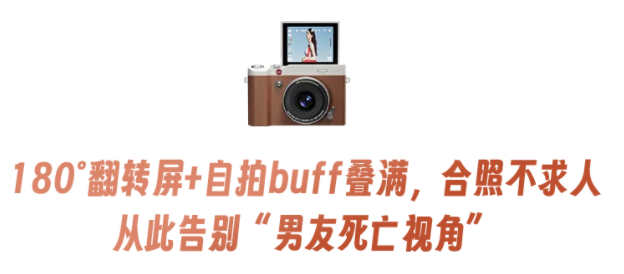 机身仅巴掌大小,180°翻转屏,自拍不求人;按键简洁,上手就会用。带它出游,比一瓶防晒霜还要轻!