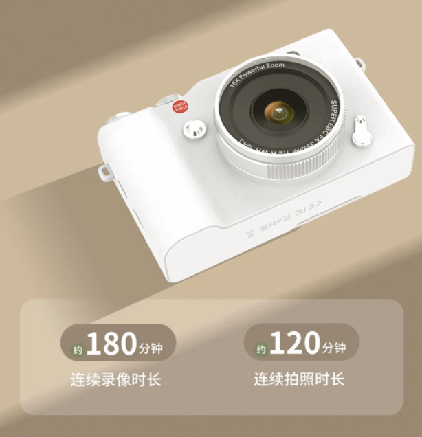 可连续拍120分钟照片(约800张),或连续录180分钟视频