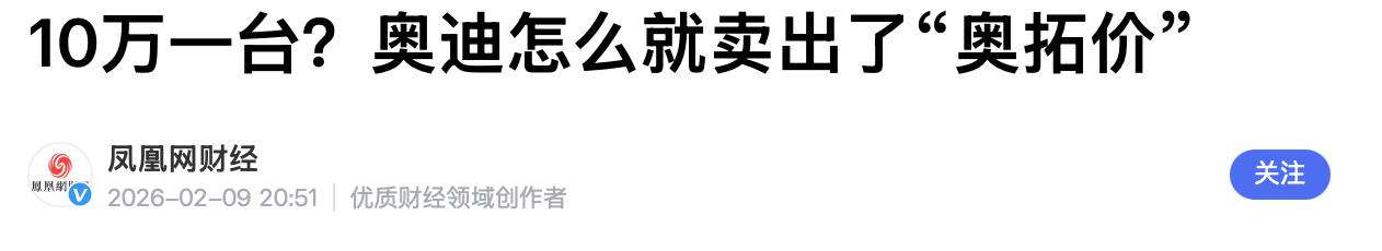 车圈震荡:奥迪只要9万9,国产电车横着走(美中報道)