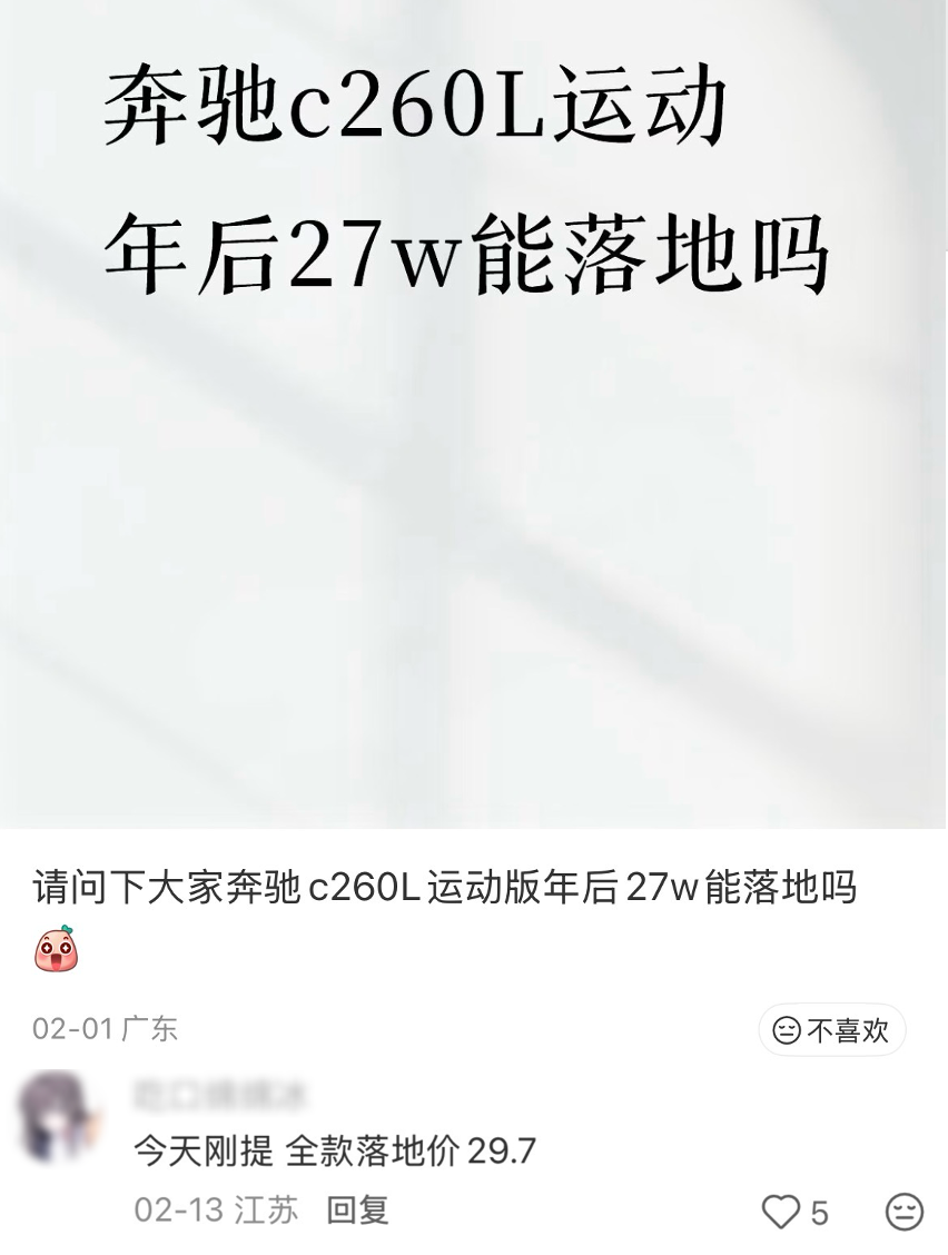 2026年2月份,汽车圈迎来了一个大消息,奔驰中国突然宣布下调大量车型的价格,其中不乏C级、GLB等热门车。而一些没有官方降价的车型,4S店也自发给出了优惠,诸如热销多年的奔驰E级,便降价高达十多万,跌破了30万元的大关。