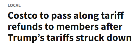 总部位于华州伊萨夸(Issaquah)的仓储式零售巨头Costco表示,在特朗普的全球关税政策上个月被推翻后,该公司将把收到的所有关税退款转给其客户。