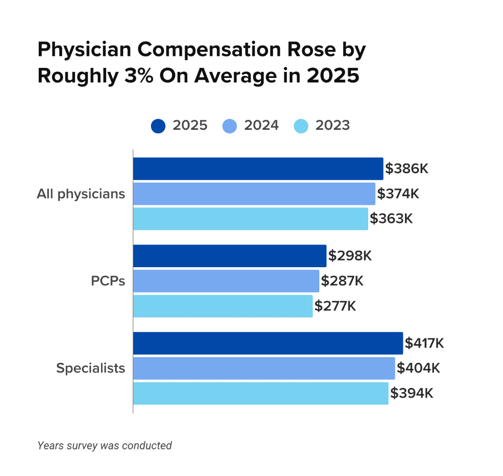 第三方分析机构将其定义为美国医生薪酬的合理回归,即经历疫情带来的剧烈波动后,当地医生收入重归正常轨道。