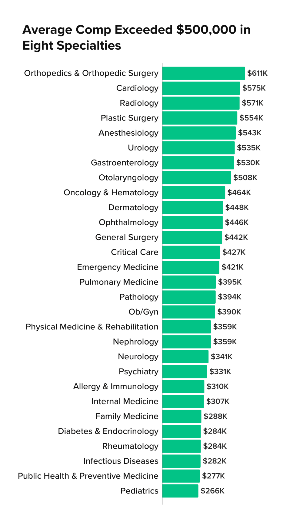 在最新报告中,有8个临床科室医生的平均年薪突破50万美元,从高到低分别是骨科与骨外科、心脏病科、放射科、整形外科、麻醉科、泌尿外科、胃肠科、耳鼻喉科。