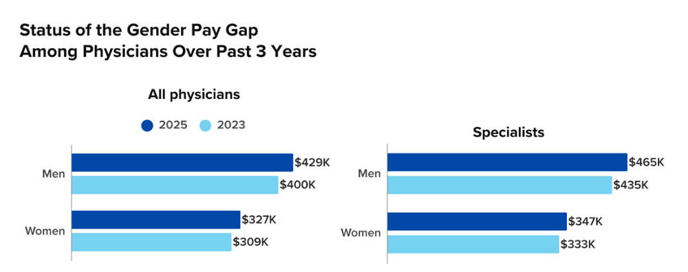 “理想情况下,薪酬高低应该更多归因于工作效率、生产力差异,而非性别。”Medscape在解读文章中写道,无论是结构性原因,还是基于医生个人职业选择,美国因性别导致的薪酬不公等情况并未改善。