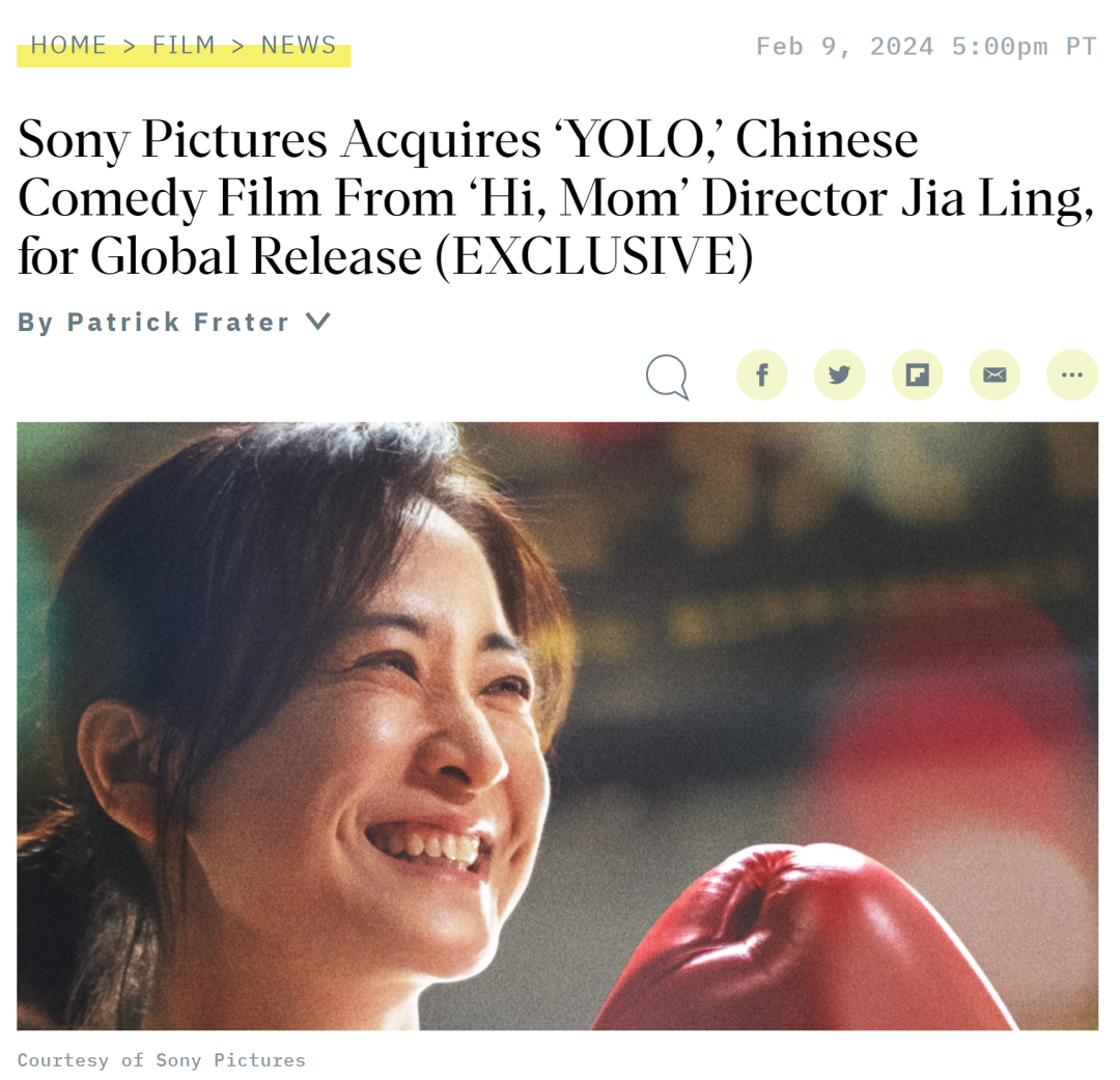 Sony Pictures has acquired international distribution rights to“YOLO,”a Chinese mainland comedy film that releases in China on Saturday,the first day of the Lunar New Year holiday. The film is written,directed by and stars Jia Ling,China s top-grossing female filmmaker.
