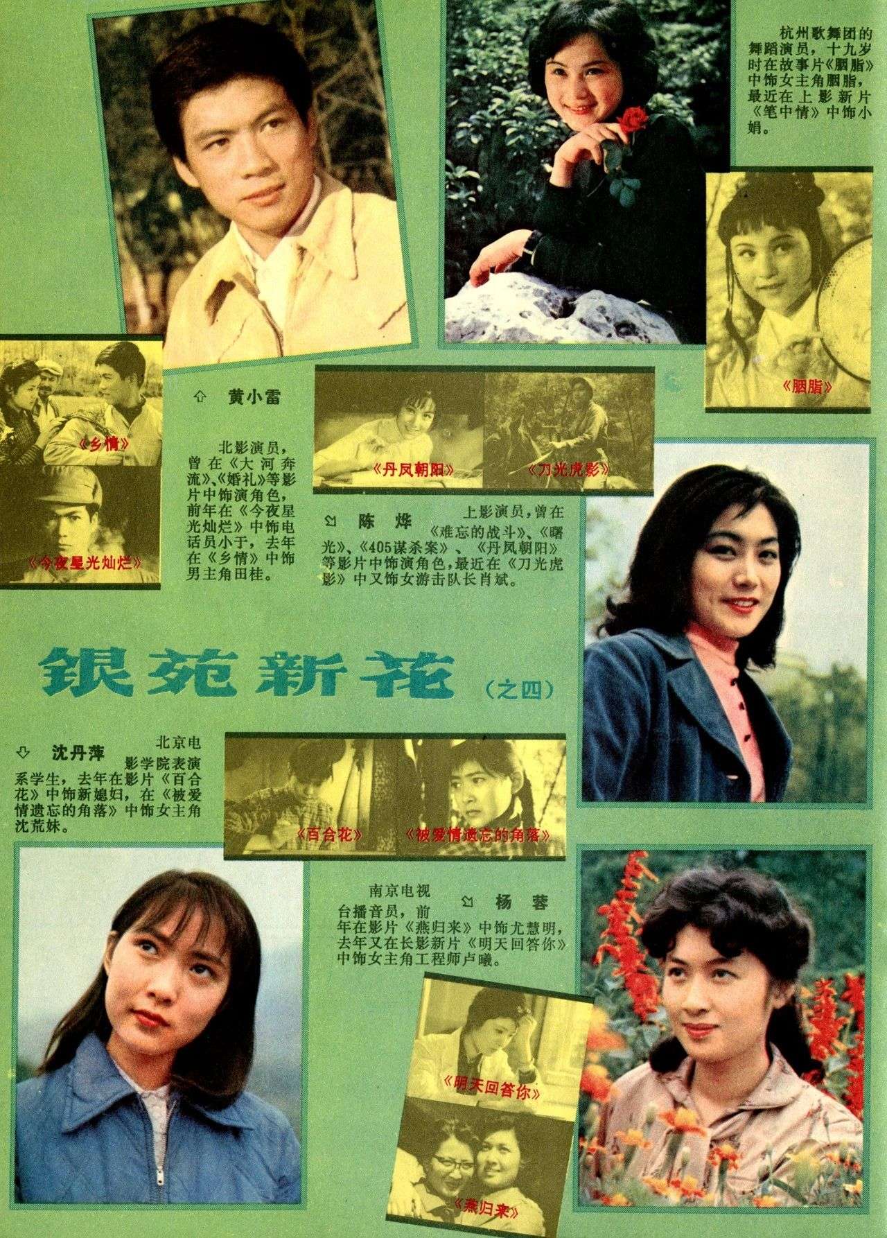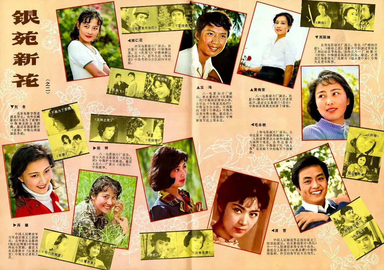 自1981年1月起,复刊的老牌电影杂志《大众电影》在珍贵的彩色画页中专门开辟了一个新的栏目,取名《银苑新花》。