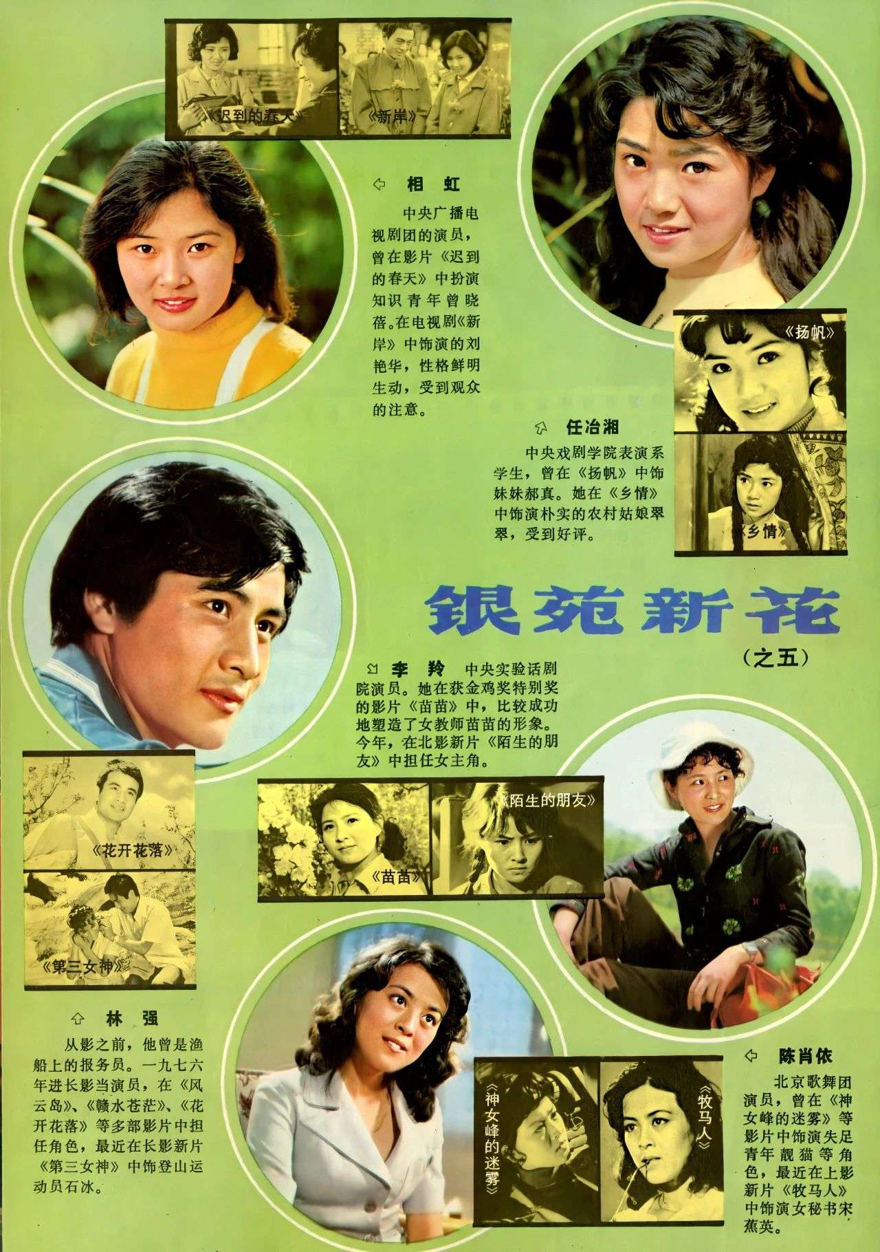 至于同样如日中天的张瑜、陈冲、刘晓庆、李秀明和张金玲这些年轻演员,大概因为太出名,或者从影若干年不再适合被称为新花,而且大多已经上过《大众电影》封面封底,则不再列入新花介绍了。