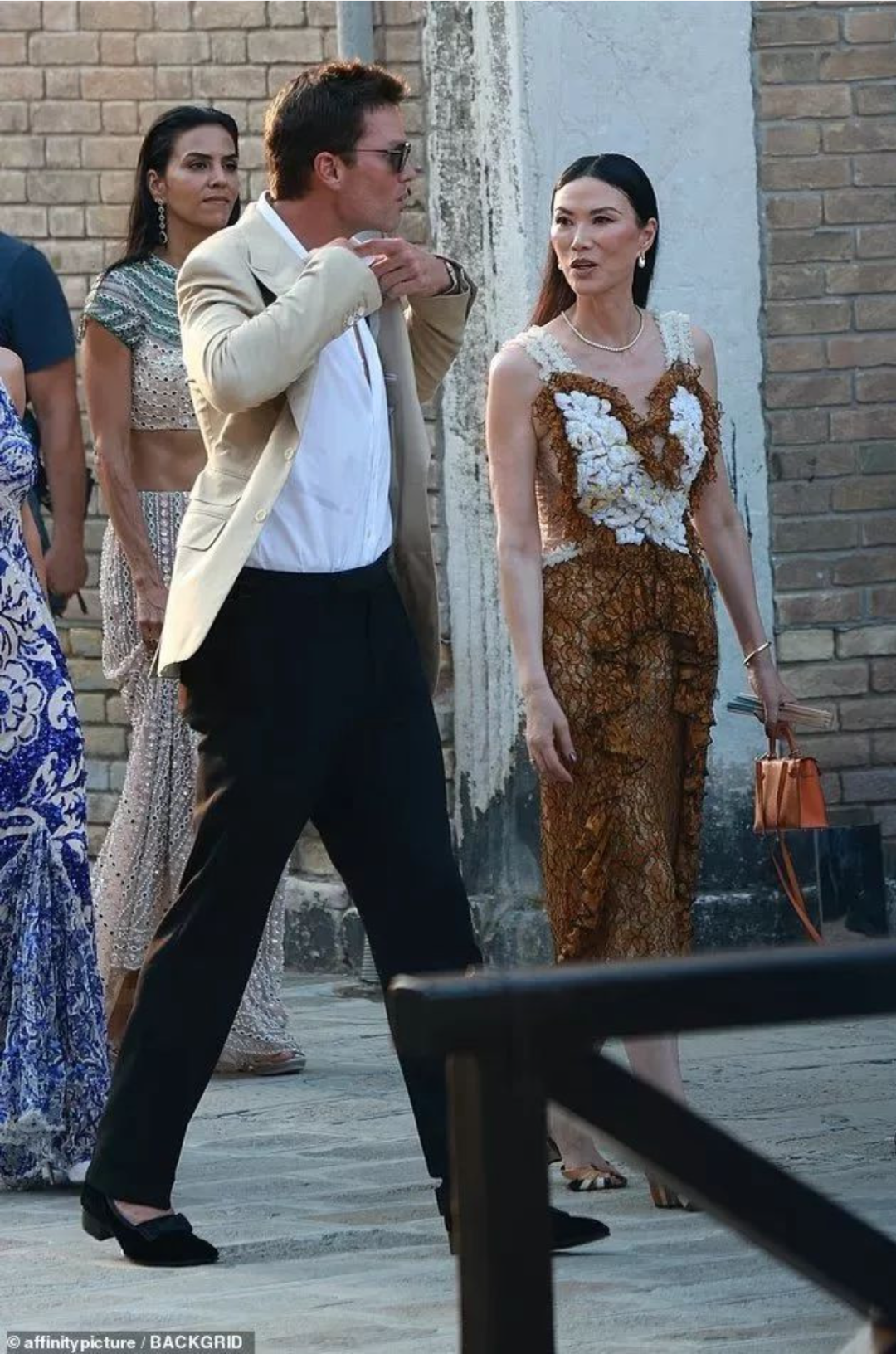 56岁的华裔女商人邓文迪也来参加了婚礼。她被拍到和橄榄球明星汤姆·布雷迪走在一起,两人聊得很开心,邓文迪笑得特别灿烂。