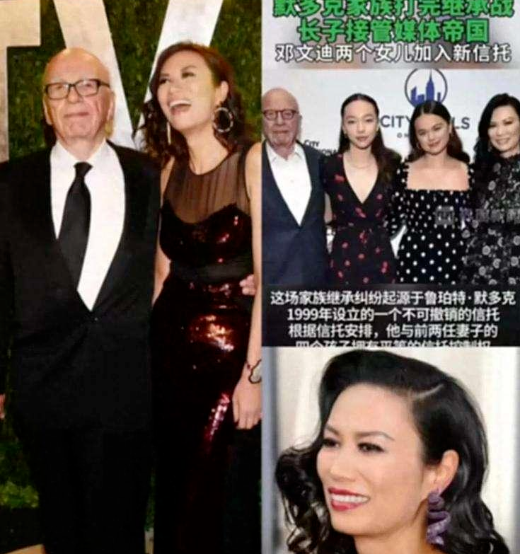 然而谁都没料到的是,终极赢家既不是默多克的儿子,也不是现任妻子,竟然是邓文迪的两个女儿。