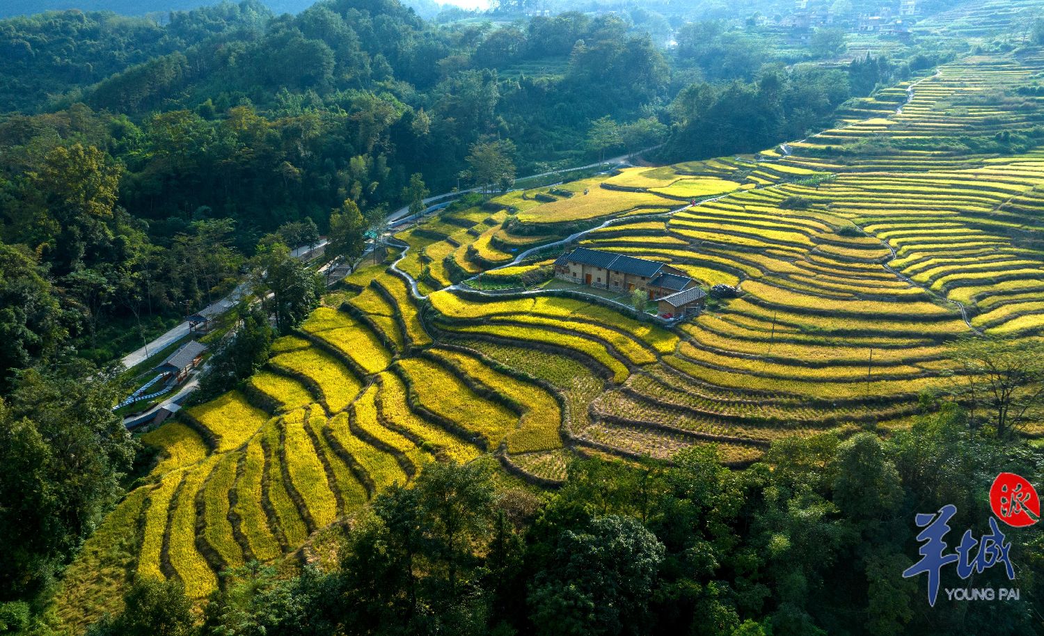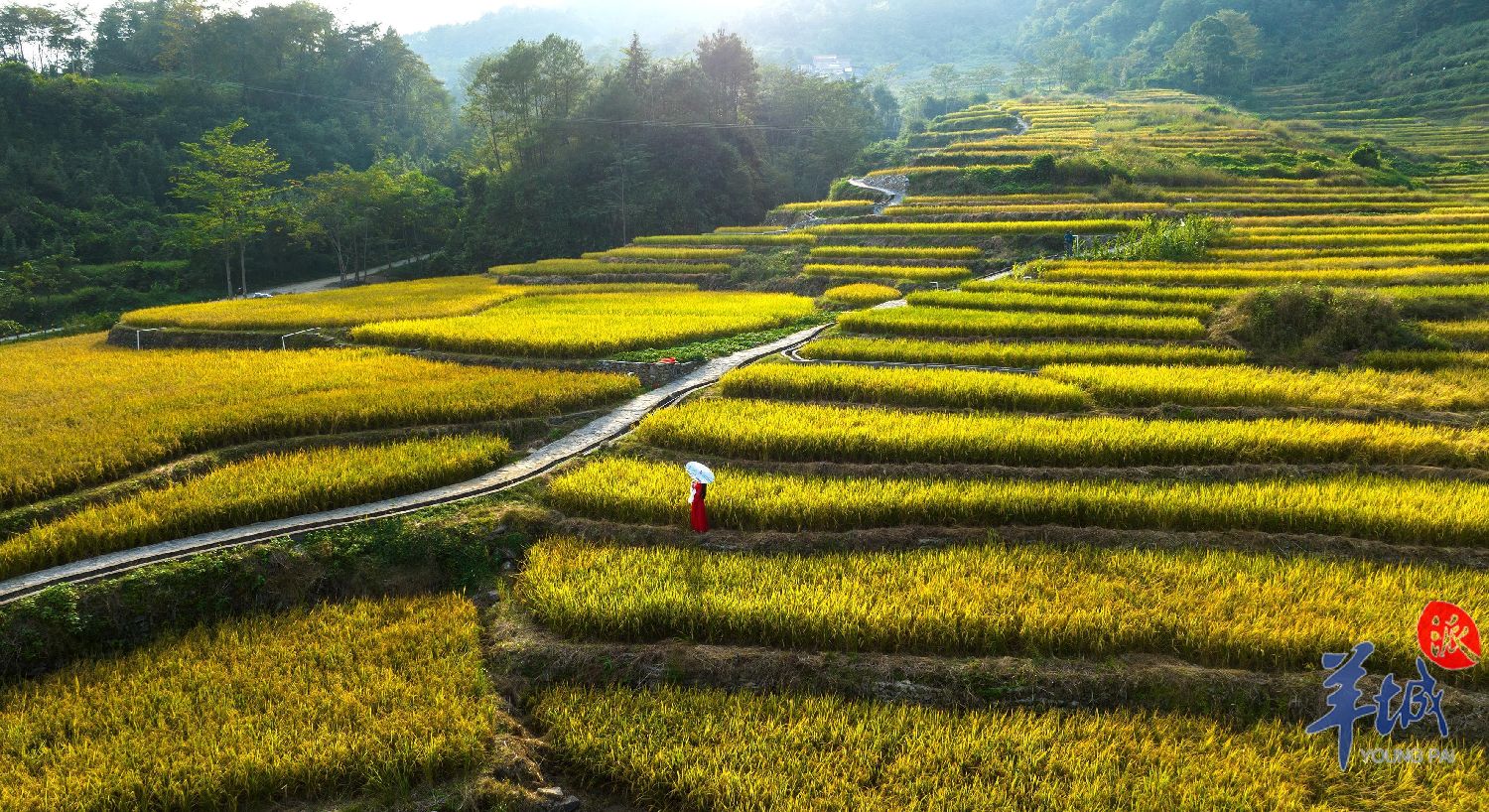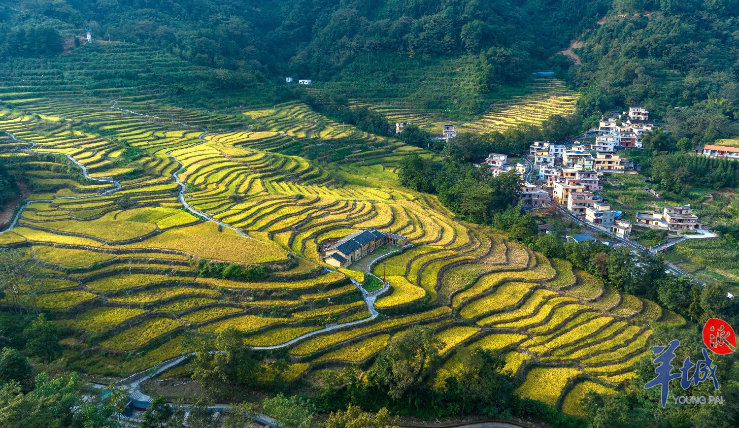 梯田里的稻谷成熟,金光粼粼谢应雄摄